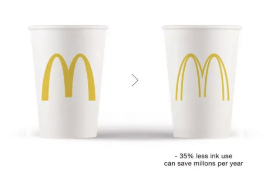 Your logo design may represent another opportunity to reduce your use of ink and energy. In 2017, a French designer demonstrated that iconic brands such as Nike and McDonalds could consume between 20% and 40% less ink simply by “hollowing out” their logos. For the most part, the designer managed to transform these logos into more eco-friendly versions without losing their instant recognizability.